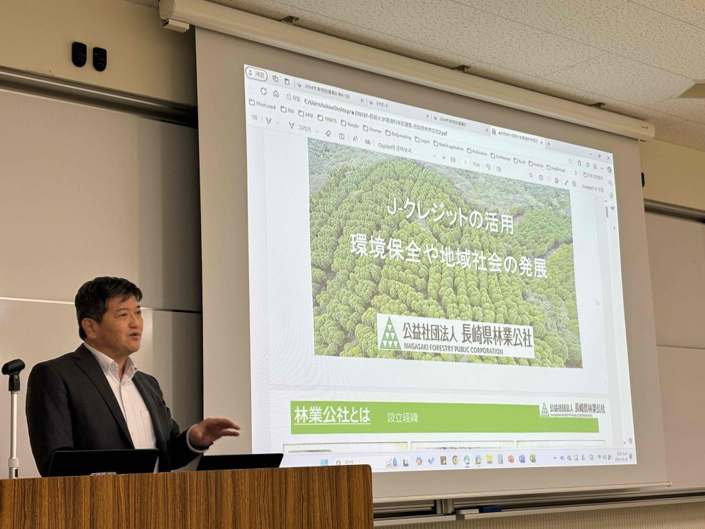 2025年1月27日、長崎大学環境科学部の「環境科学特別講義B(環境政策)」において、当協議会に非常勤講師の依頼があり、講義を行いました。